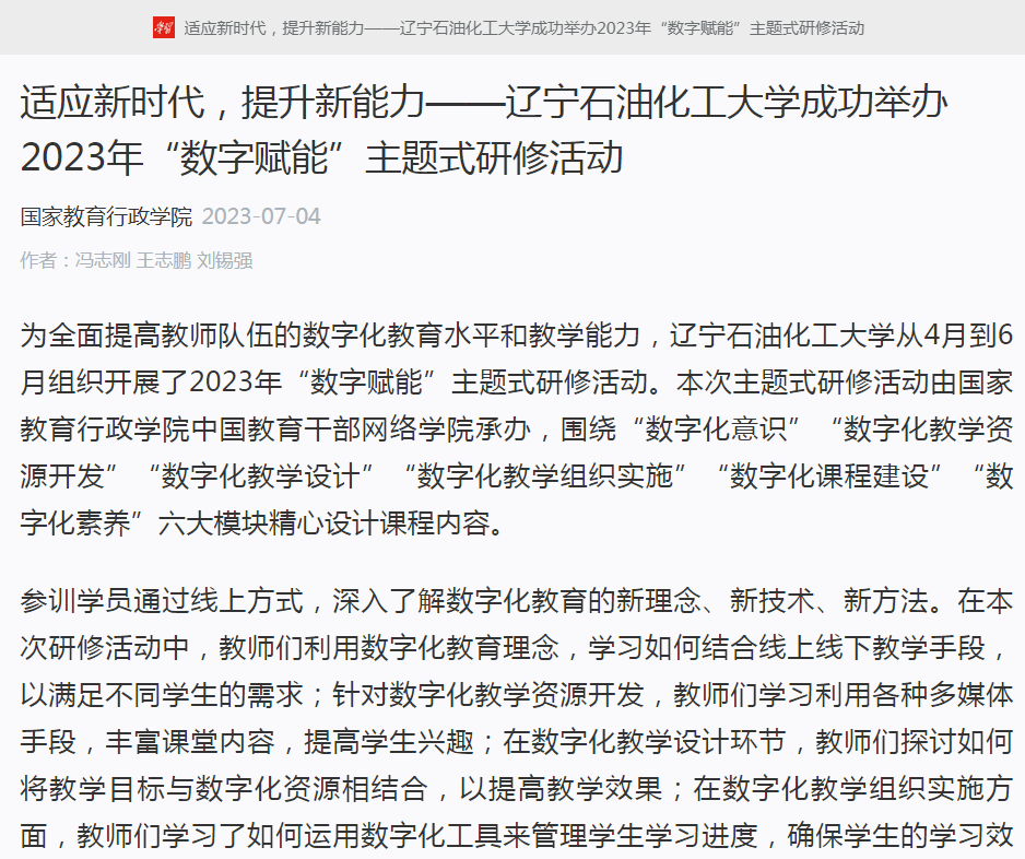 编者按:近日,学习强国主平台、辽宁日报·北国号、人民日报客户端·人民号以《适应新时代,提升新能力——国产亚洲综合一区二区三区_亚洲欧美日韩中文天堂_尤物在线观看视频不卡无码_国产最新精品亚洲2025不卡_亚洲成Av人在线观看片水蜜桃成功举办2023年“数字赋能”主题式研修活动》为题,对我校以学促干,从4月到6月组织开展了2023年“数字赋能”主题式研修活动,全面提高教师队伍的数字化教育水平和教学能力,推动学校高质量发展作了报道。现将相关报道转载如下: