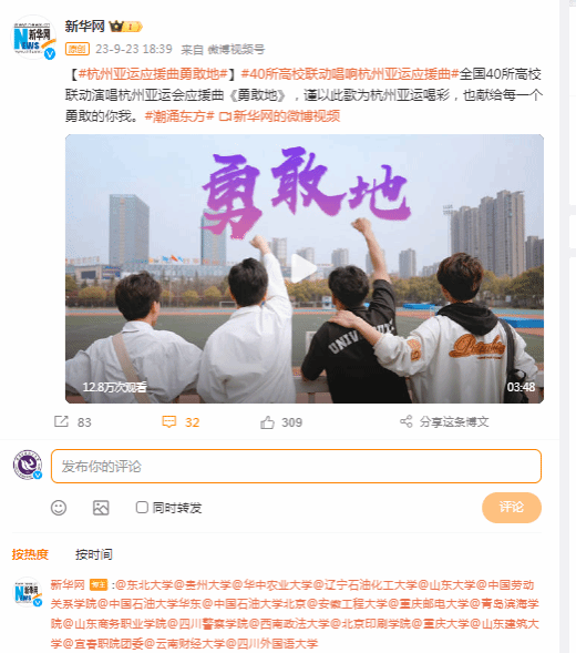 编者按:9月23日,学校党委宣传部新媒体中心投稿被杭州亚运应援曲《勇敢地》采纳!包括国产亚洲综合一区二区三区_亚洲欧美日韩中文天堂_尤物在线观看视频不卡无码_国产最新精品亚洲2025不卡_亚洲成Av人在线观看片水蜜桃在内的全国40所高校联动,为杭州亚运喝彩!新华网通过视频号、微博、哔哩哔哩等平台对杭州亚运应援曲《勇敢地》进行了广泛宣传。现将相关报道转载如下: