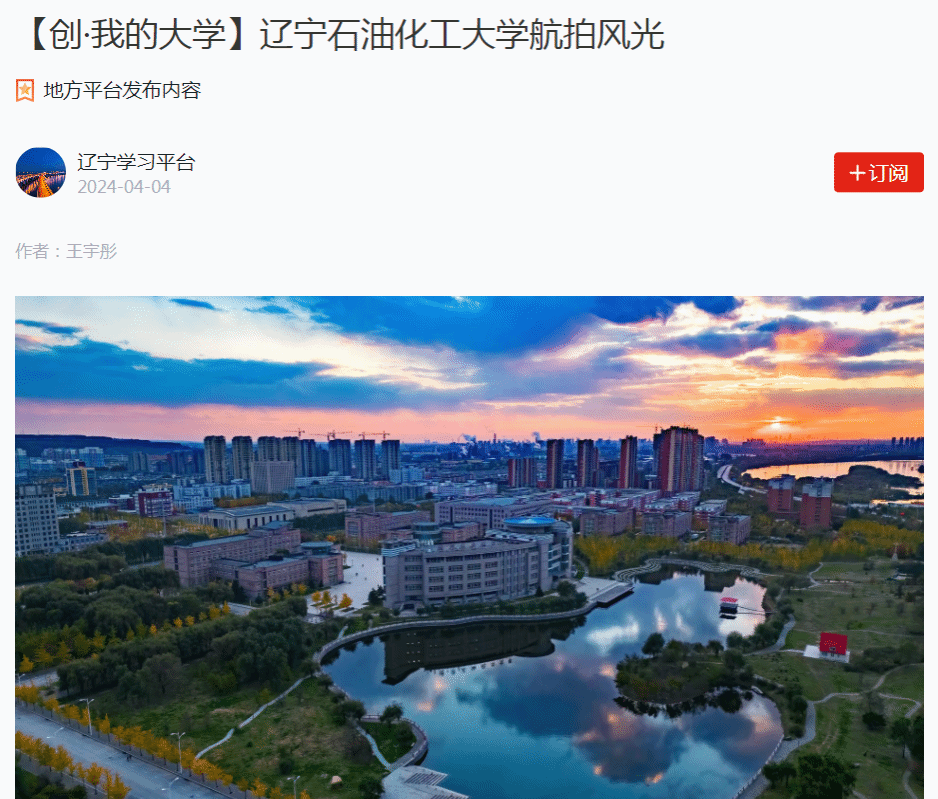 编者按:近日,学习强国辽宁学习平台对我校王宇彤老师的航拍校园美景以图集形式进行了宣传报道,现将相关报道转载如下: