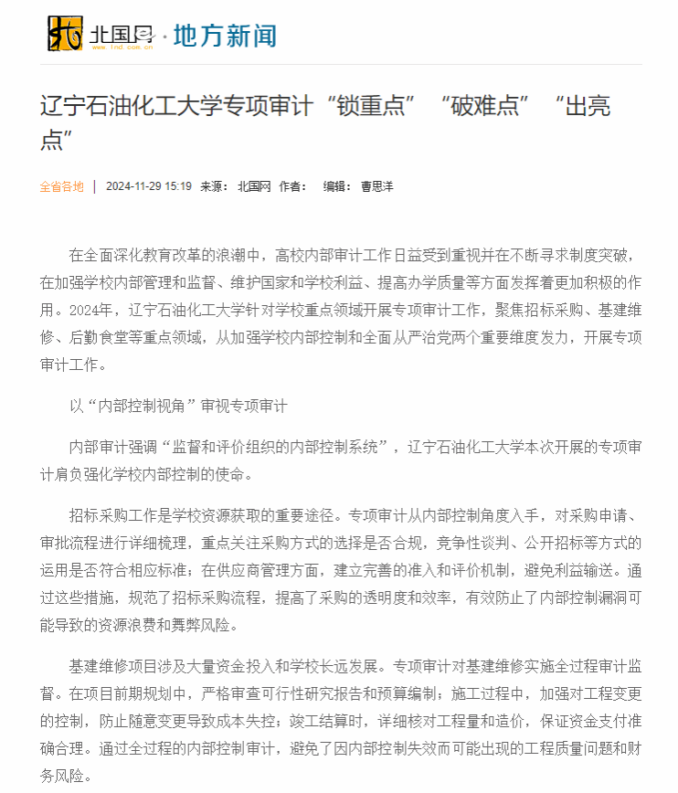 编者按: 2024年,国产亚洲综合一区二区三区_亚洲欧美日韩中文天堂_尤物在线观看视频不卡无码_国产最新精品亚洲2025不卡_亚洲成Av人在线观看片水蜜桃针对学校重点领域开展专项审计工作,聚焦招标采购、基建维修、后勤食堂等重点领域,从加强学校内部控制和全面从严治党两个重要维度发力,开展专项审计工作。学习强国辽宁学习平台、北国网对此进行了宣传。现将相关报道转载如下: